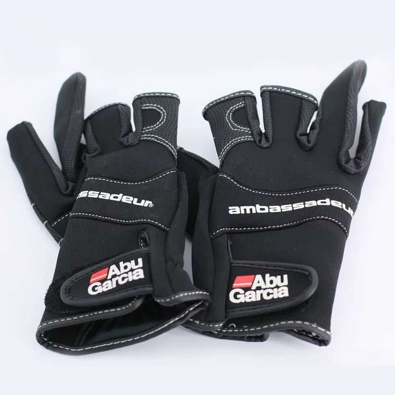 ABU Garcia Fishing Gloves Three Fingers Cut Lure Anti-Slip Leather Gloves PU Outdoor Sports Fingerless Gloves 1Pair High-Quality